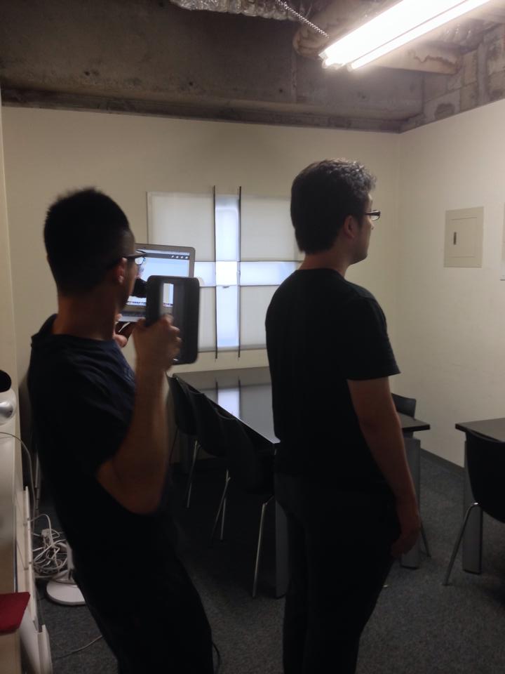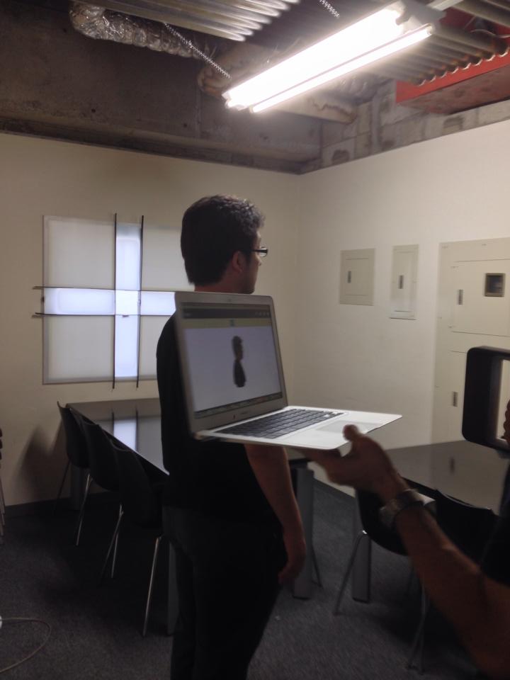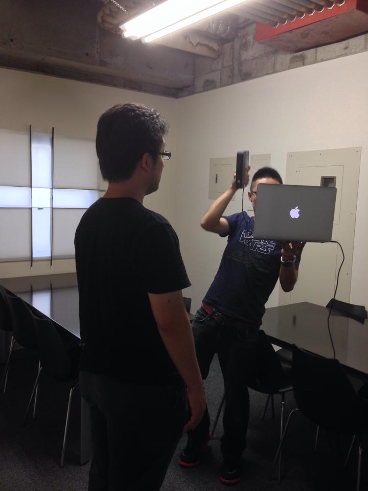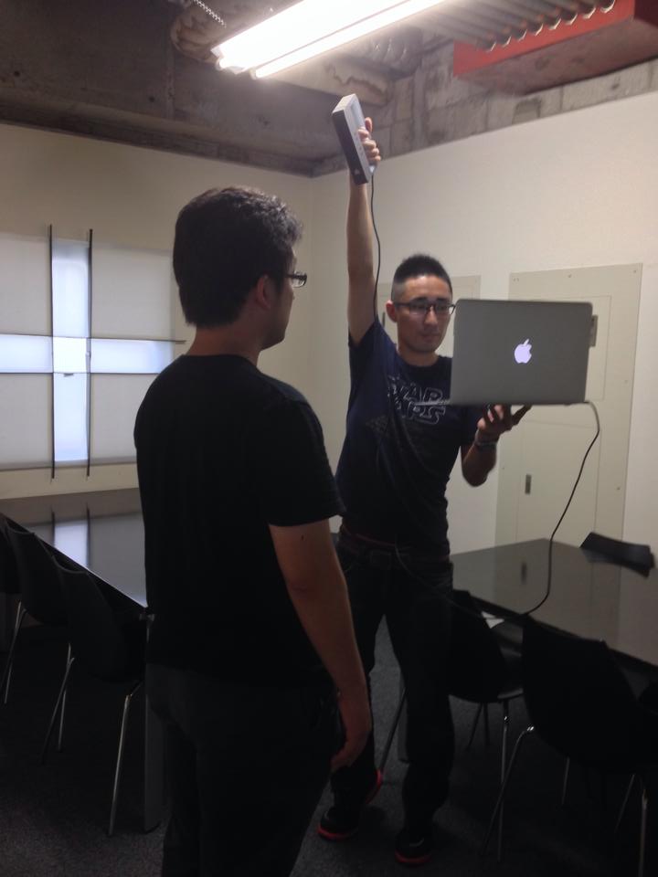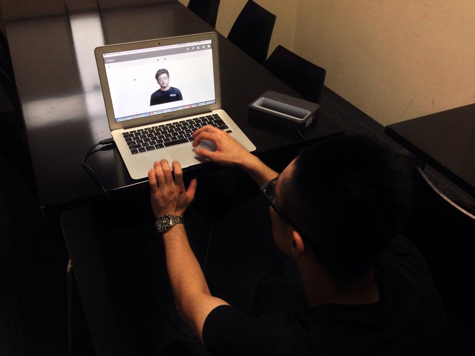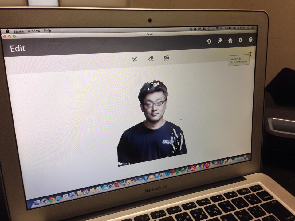 まず、全身を3Dスキャナーでスキャンします。撮られる側としては立っているだけで、その周りを3Dスキャナー「Sense」でデータを取っていきます。