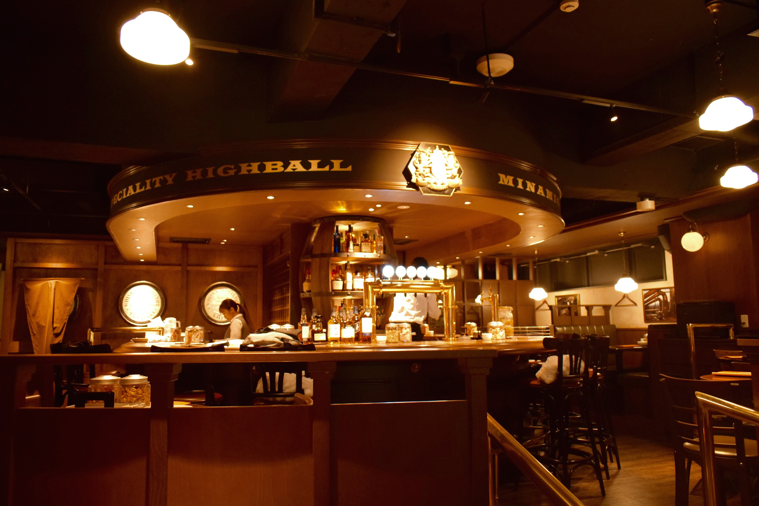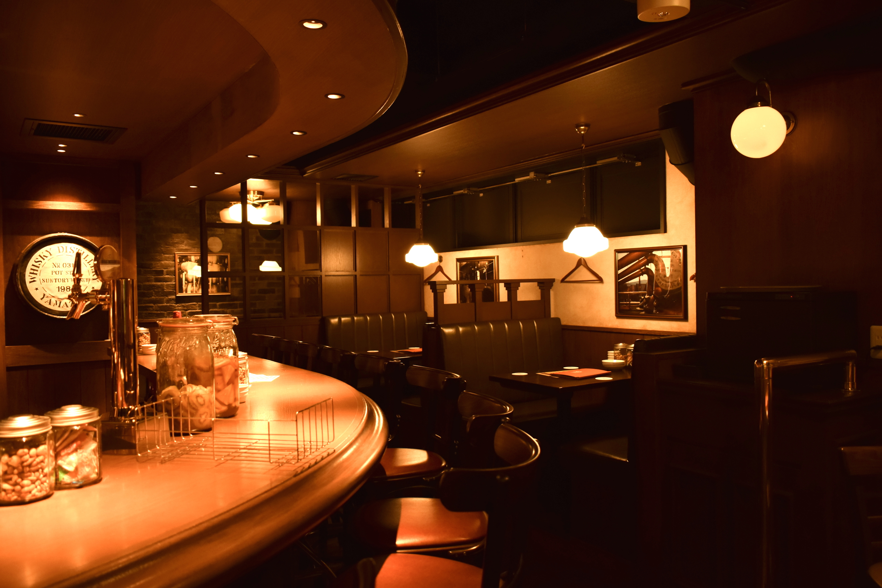 バーカウンターは座席として利用することもでき、ウィスキー専用のサーバーで作られるハイボールができあがるところも間近で見ることができます。